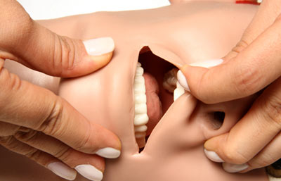 A cabeça permite uma total articulação, permitindo a abertura da boca, que possui dentes, língua e palato (confeccionada com material macio, dando maior realismo à simulação).